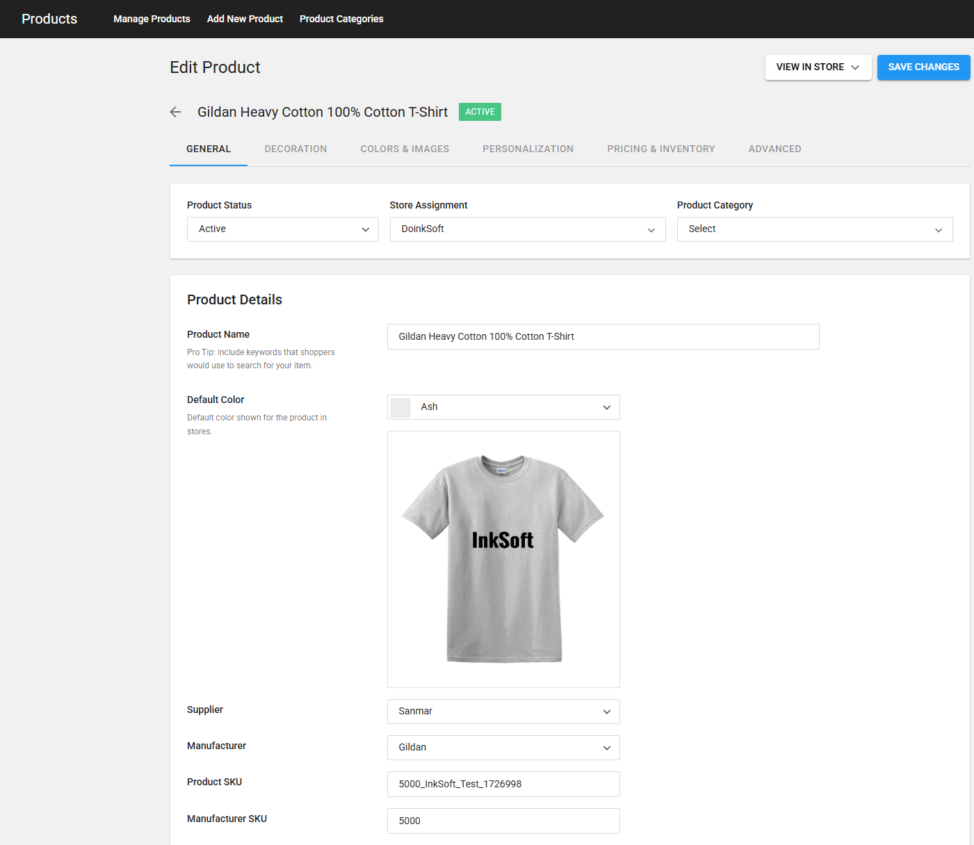After the design has finished rendering (or you've uploaded your own product image via "Upload From Computer"), you will be brought to the Edit Product page within Manage Products to assign your product information.