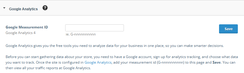 Once you have your account set up and ready to go. Enter your Google Measurement ID and save to see all your traffic reports at Google Analytics!